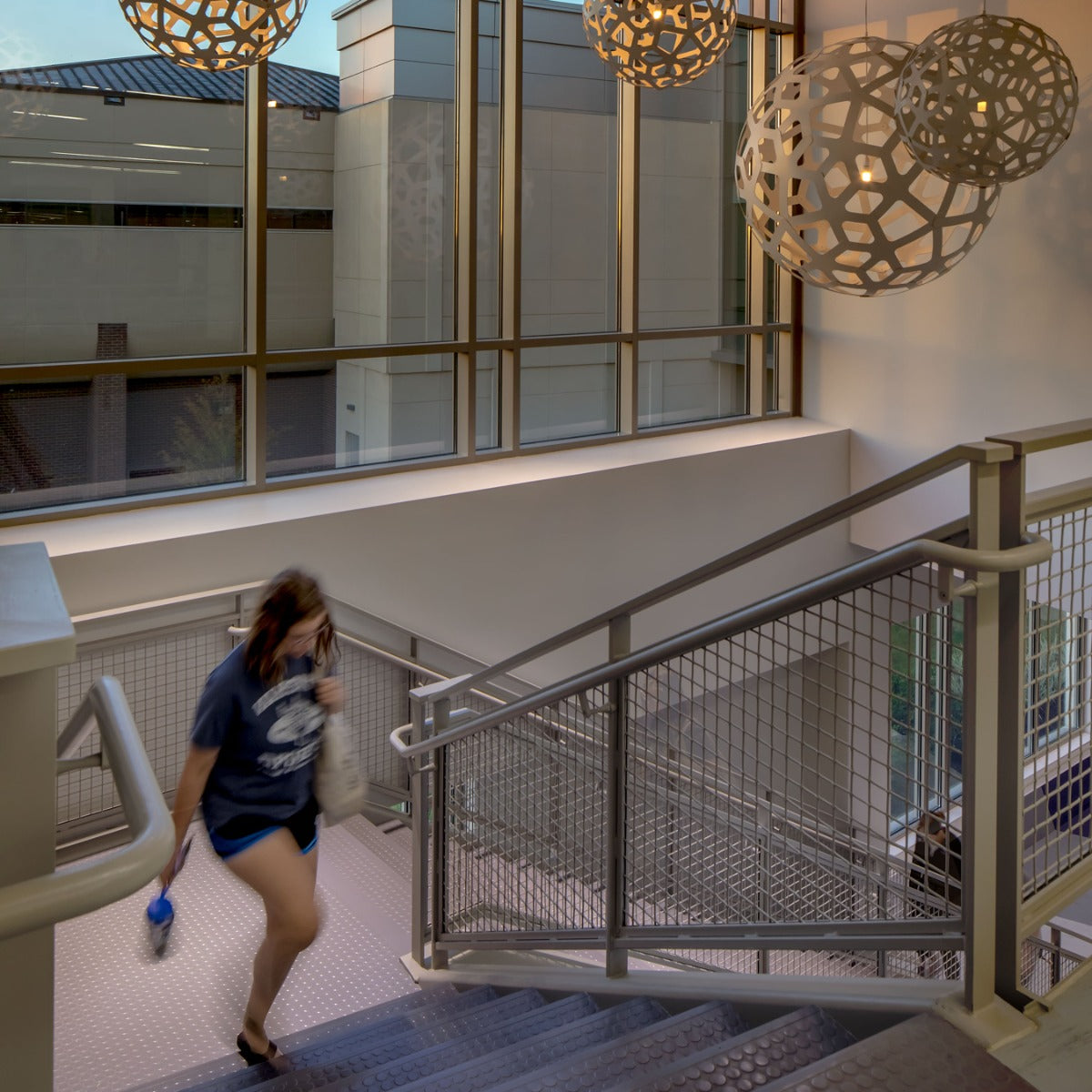 In wellness facilities where movement and activity define the space, materials must work hard. Linford delivers on that front. Its tension-holding capacity, material resilience, and crisp geometry make it ideal for use in mezzanine railings, stairwells, guardrails, and other transitional areas.